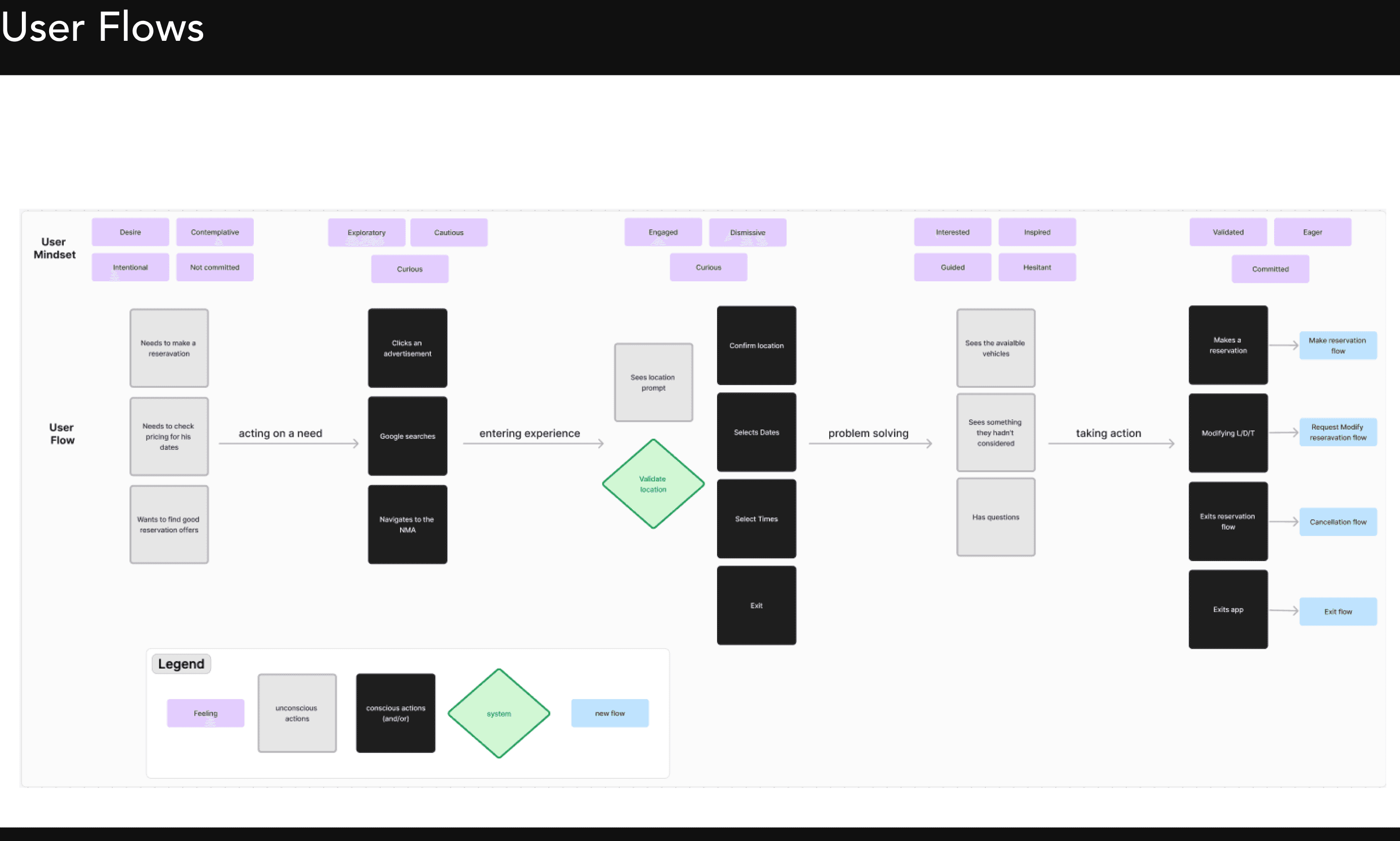 Together with strategy team, I developed user personas to guide design decisions, with a strong focus on power users who drive the majority of interactions. The key persona was Michelle, a frequent business traveler, who values efficiency, quick access to reservations, and a seamless pickup experience. Since power users like Michelle have high expectations for speed and convenience, every design decision—from navigation to micro-interactions—was tightly aligned with their needs.