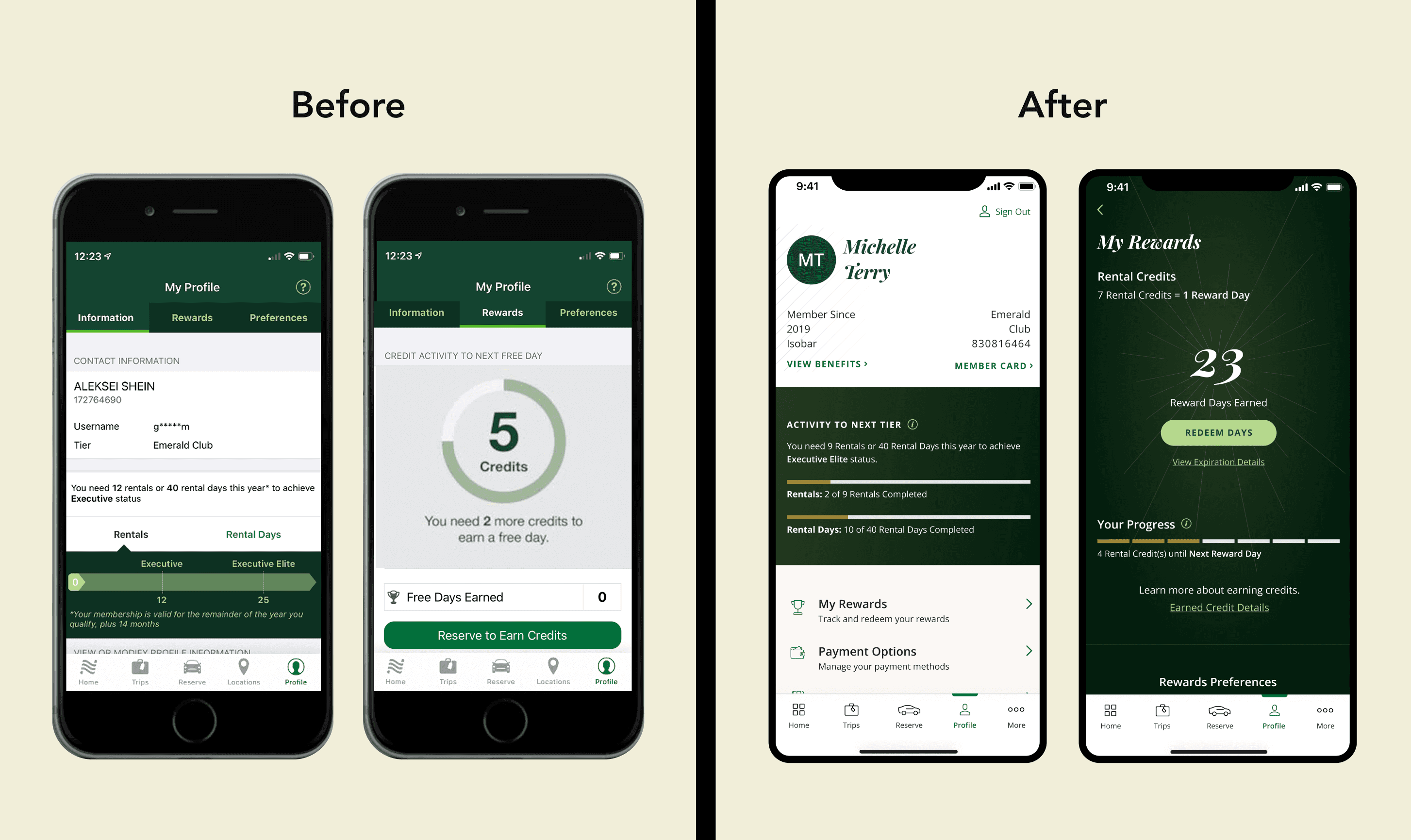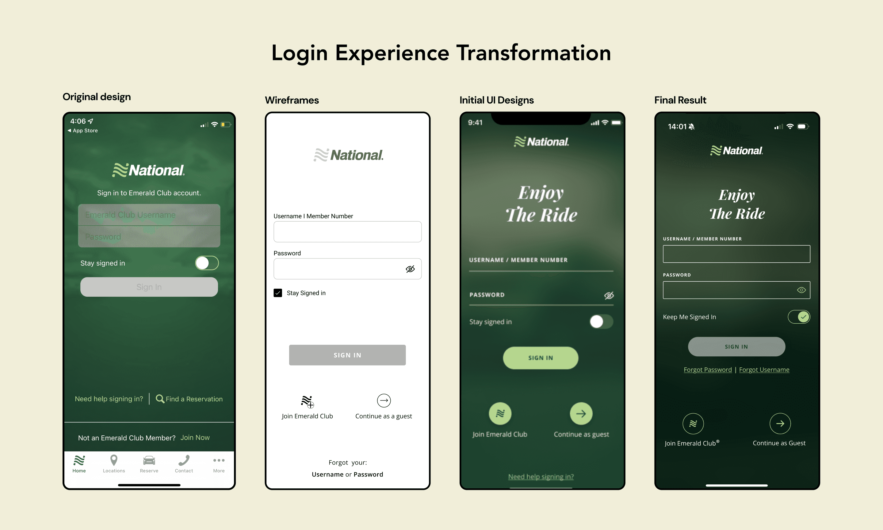 The National Mobile App’s outdated design and technology hurt its premium image for VIP and corporate clients. Technical issues and limitations caused problems with car reservations and blocked new features like express booking and map view. The ask was to create a comprehensive experience that resolved existing issues while incorporating stakeholder feedback and prioritizing customer needs.